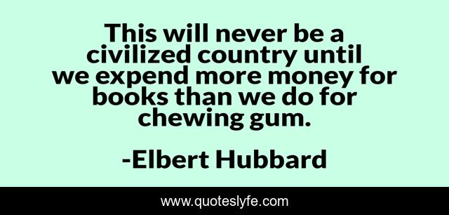 This page presents the quote "This will never be a civilized country until we expend more money for books than we do for chewing gum.". Author of this quote is Elbert Hubbard. This quote is about illiteracy, books, reading,.