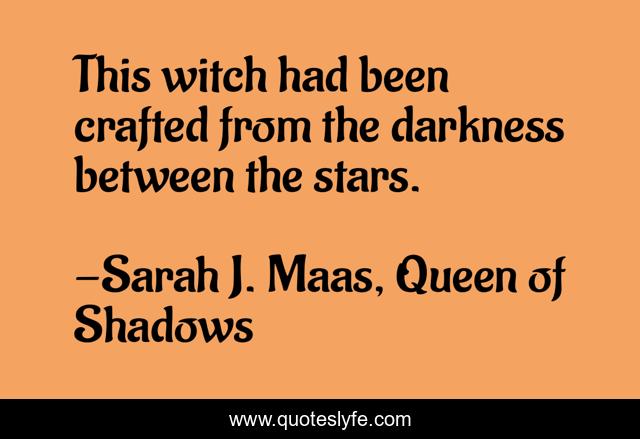This page presents the quote "This witch had been crafted from the darkness between the stars.". Author of this quote is Sarah J. Maas, Queen of Shadows. This quote is about magic, romantic, love, dark, witch, stars, queen-of-shadows, manon-blackbeak, affection,.