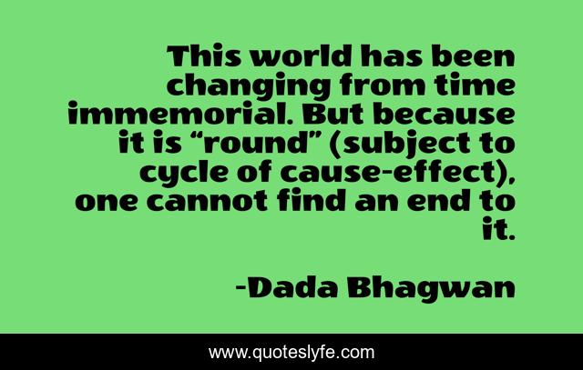 This page presents the quote "This world has been changing from time immemorial. But because it is “round” (subject to cycle of cause-effect), one cannot find an end to it.". Author of this quote is Dada Bhagwan. This quote is about world, spiritual, effect, round,.