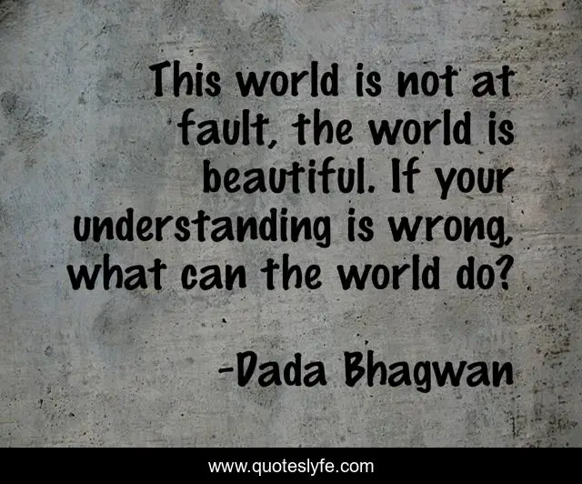 This page presents the quote "This world is not at fault, the world is beautiful. If your understanding is wrong, what can the world do?". Author of this quote is Dada Bhagwan. This quote is about fault, spiritual, faultless, flawless,.
