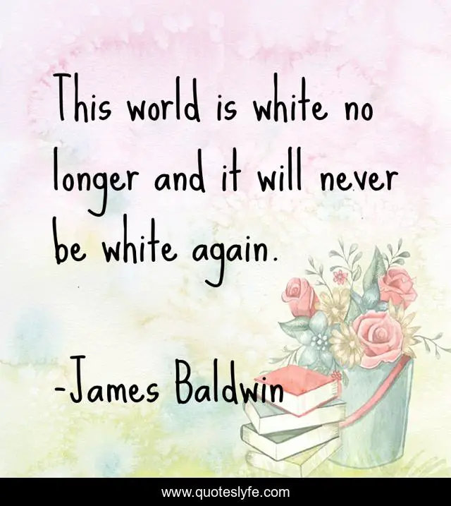 This page presents the quote "This world is white no longer and it will never be white again.". Author of this quote is James Baldwin. This quote is about ethics, morality,.