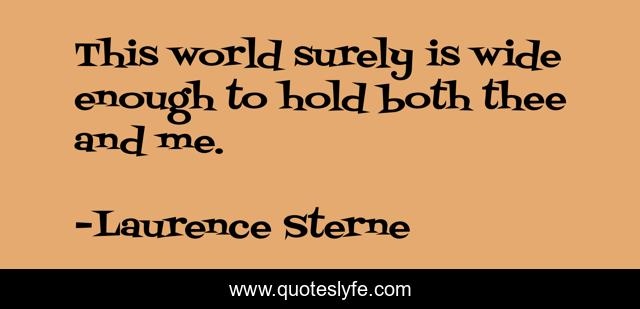 This page presents the quote "This world surely is wide enough to hold both thee and me.". Author of this quote is Laurence Sterne. .