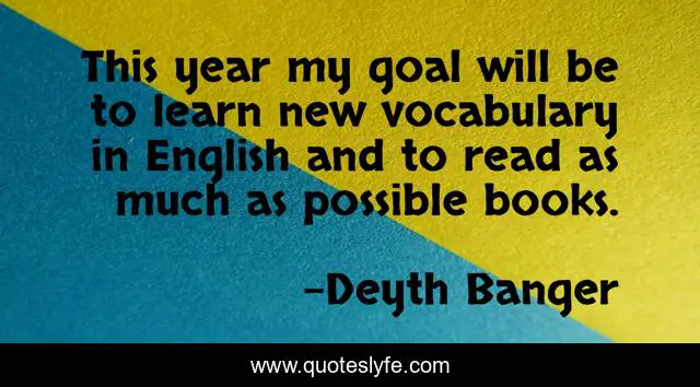 This page presents the quote "This year my goal will be to learn new vocabulary in English and to read as much as possible books.". Author of this quote is Deyth Banger. This quote is about my, goal, vocabulary, english,.