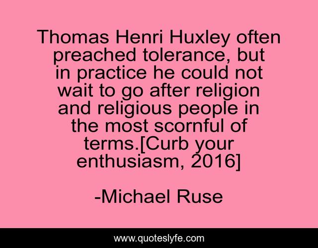 This page presents the quote "Thomas Henri Huxley often preached tolerance, but in practice he could not wait to go after religion and religious people in the most scornful of terms.[Curb your enthusiasm, 2016]". Author of this quote is Michael Ruse. This quote is about intolerance, tolerance, contradiction,.