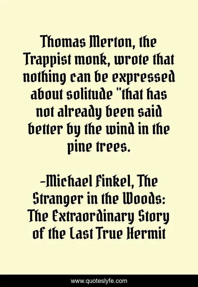 "Michael Finkel, The Stranger in the Woods: The Extraordinary Story of the Last True Hermit Quotes." Quoteslyfe.com, 2025. Sun. 07 Dec. 2025. <https://www.quoteslyfe.com/quote/Thomas-Merton-the-Trappist-monk-wrote-that-192763>.