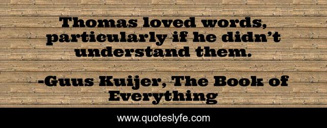 This page presents the quote "Thomas loved words, particularly if he didn’t understand them.". Author of this quote is Guus Kuijer, The Book of Everything. .