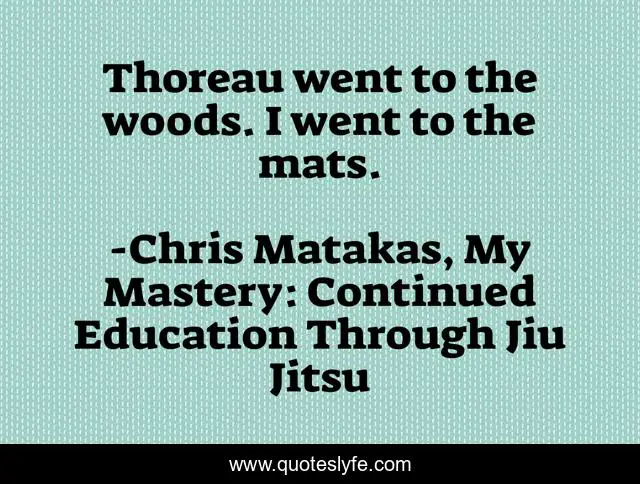 "Chris Matakas, My Mastery: Continued Education Through Jiu Jitsu Quotes." Quoteslyfe.com, 2025. Sat. 06 Dec. 2025. <https://www.quoteslyfe.com/quote/Thoreau-went-to-the-woods-I-went-117057>.