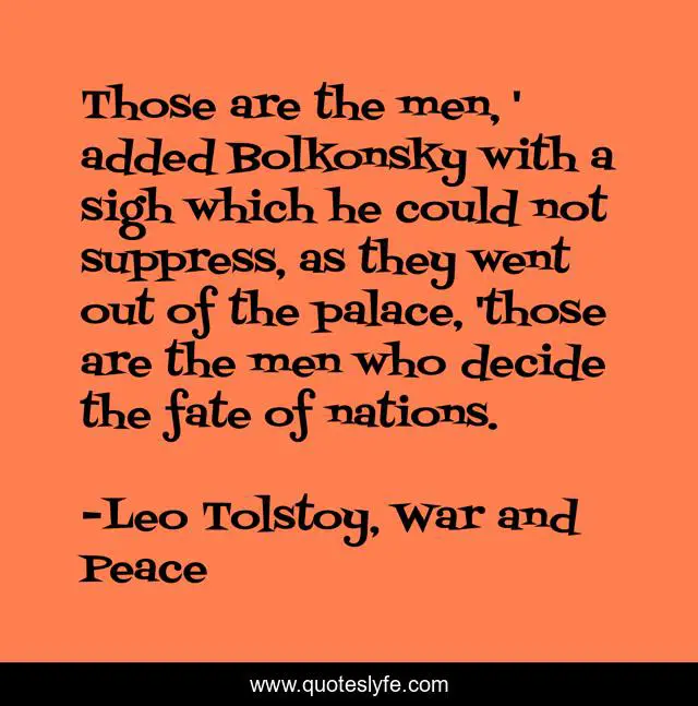 This page presents the quote "Those are the men, ' added Bolkonsky with a sigh which he could not suppress, as they went out of the palace, 'those are the men who decide the fate of nations.". Author of this quote is Leo Tolstoy, War and Peace. .
