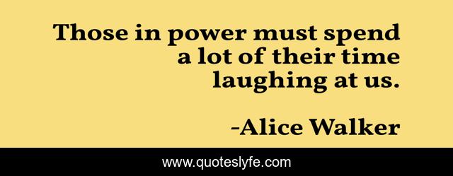 This page presents the quote "Those in power must spend a lot of their time laughing at us.". Author of this quote is Alice Walker. This quote is about plutocracy, ruling-class, democracy, oligarchy,.