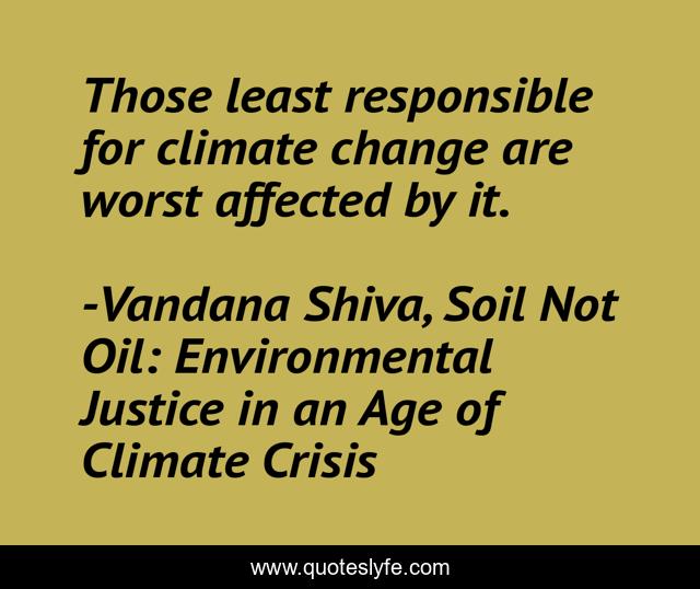 "Vandana Shiva, Soil Not Oil: Environmental Justice in an Age of Climate Crisis Quotes." Quoteslyfe.com, 2025. Fri. 05 Dec. 2025. <https://www.quoteslyfe.com/quote/Those-least-responsible-for-climate-change-are-230700>.