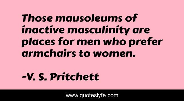 "V. S. Pritchett Quotes." Quoteslyfe.com, 2025. Fri. 05 Dec. 2025. <https://www.quoteslyfe.com/quote/Those-mausoleums-of-inactive-masculinity-are-places-261771>.