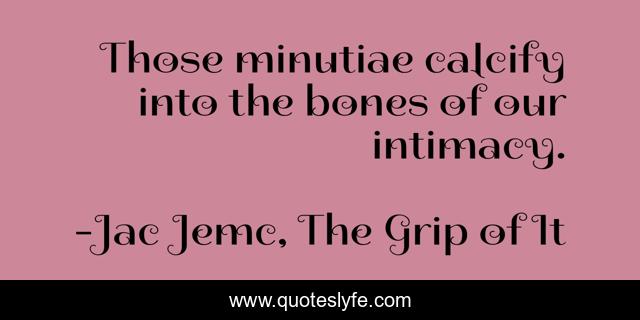 This page presents the quote "Those minutiae calcify into the bones of our intimacy.". Author of this quote is Jac Jemc, The Grip of It. This quote is about bones, calcify, intimacy,.