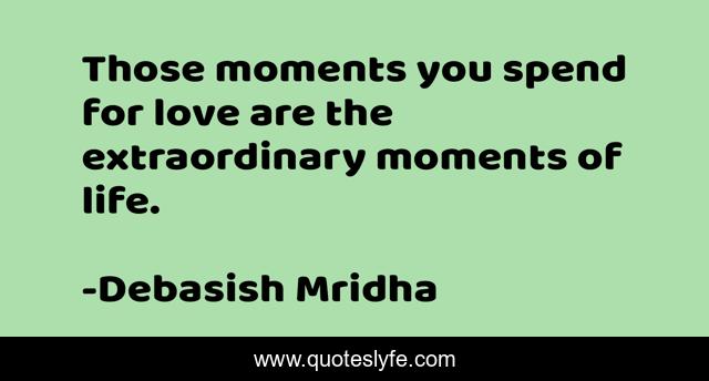 This page presents the quote "Those moments you spend for love are the extraordinary moments of life.". Author of this quote is Debasish Mridha. This quote is about life, love, knowledge, inspirational, intelligence, philosophy, wisdom, quotes, affection,.