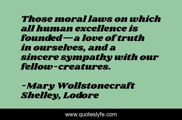 This page presents the quote "Those moral laws on which all human excellence is founded—a love of truth in ourselves, and a sincere sympathy with our fellow-creatures.". Author of this quote is Mary Wollstonecraft Shelley, Lodore. This quote is about compassion, good, kindness, truth, morality,.