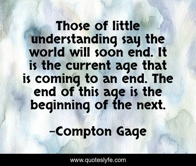 Those of little understanding say the world will soon end. It is the current age that is coming to an end. The end of this age is the beginning of the next.