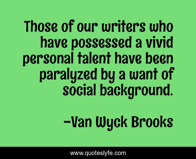 This page presents the quote "Those of our writers who have possessed a vivid personal talent have been paralyzed by a want of social background.". Author of this quote is Van Wyck Brooks. This quote is about genre, imagination, craft, relevance,.