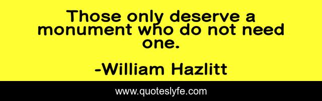 This page presents the quote "Those only deserve a monument who do not need one.". Author of this quote is William Hazlitt. .