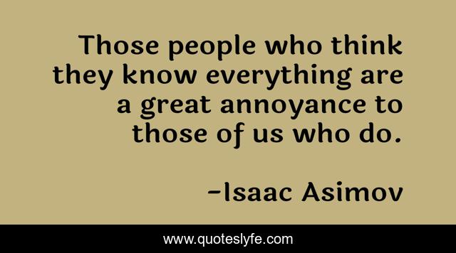 This page presents the quote "Those people who think they know everything are a great annoyance to those of us who do.". Author of this quote is Isaac Asimov. .