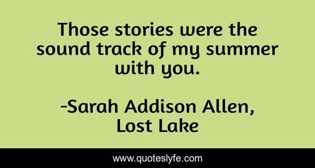 This page presents the quote "Those stories were the sound track of my summer with you.". Author of this quote is Sarah Addison Allen, Lost Lake. .