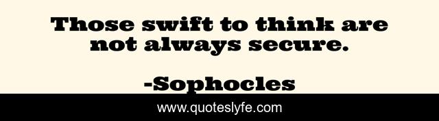 This page presents the quote "Those swift to think are not always secure.". Author of this quote is Sophocles. .
