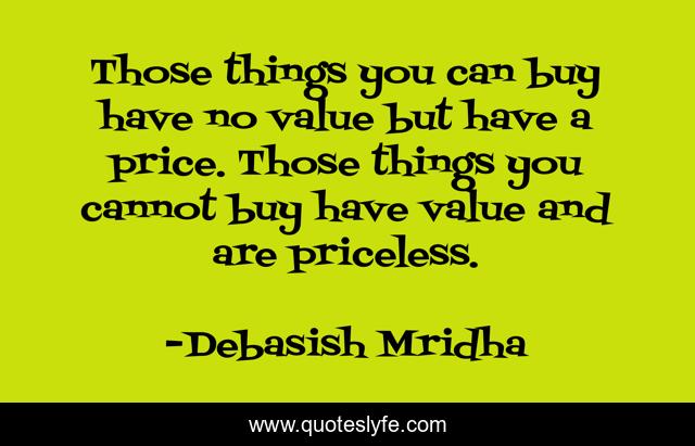 This page presents the quote "Those things you can buy have no value but have a price. Those things you cannot buy have value and are priceless.". Author of this quote is Debasish Mridha. This quote is about philosophy, priceless-things, mridha, price, debasish, debasish-mridha, value, priceless, things-with-no-value,.