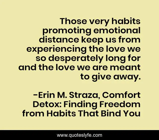 "Erin M. Straza, Comfort Detox: Finding Freedom from Habits That Bind You Quotes." Quoteslyfe.com, 2025. Sat. 06 Dec. 2025. <https://www.quoteslyfe.com/quote/Those-very-habits-promoting-emotional-distance-keep-35299>.