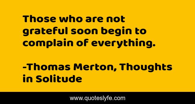 This page presents the quote "Those who are not grateful soon begin to complain of everything.". Author of this quote is Thomas Merton, Thoughts in Solitude. This quote is about gratitude, thanksgiving,.