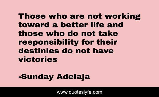 This page presents the quote "Those who are not working toward a better life and those who do not take responsibility for their destinies do not have victories". Author of this quote is Sunday Adelaja. This quote is about life, destinies, fulfillment, work, calling, responsibility, victory, purpose,.