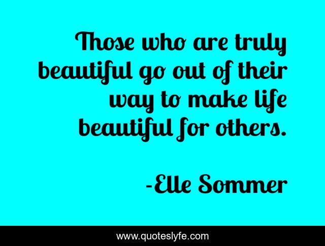 This page presents the quote "Those who are truly beautiful go out of their way to make life beautiful for others.". Author of this quote is Elle Sommer. This quote is about beautiful, life, encouraging, appreciation, inspirational, enthusiasm,.