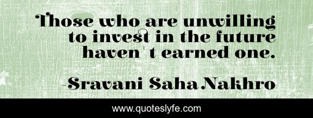 This page presents the quote "Those who are unwilling to invest in the future haven't earned one.". Author of this quote is Sravani Saha Nakhro. .