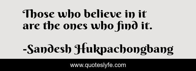 This page presents the quote "Those who believe in it are the ones who find it.". Author of this quote is Sandesh Hukpachongbang. This quote is about fantasy, magic, inspirational, enthusiasm,.