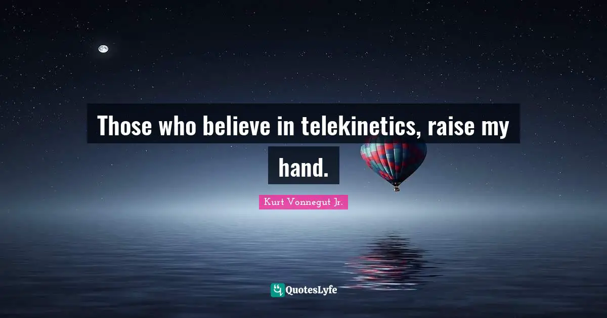 "Kurt Vonnegut Jr. Quotes." Quoteslyfe.com, 2025. Tue. 23 Dec. 2025. <https://www.quoteslyfe.com/quote/Those-who-believe-in-telekinetics-raise-my-55220>.