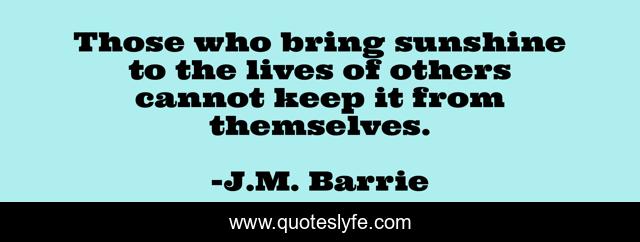 This page presents the quote "Those who bring sunshine to the lives of others cannot keep it from themselves.". Author of this quote is J.M. Barrie. This quote is about enthusiasm, inspirational,.