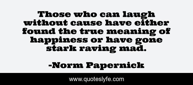 This page presents the quote "Those who can laugh without cause have either found the true meaning of happiness or have gone stark raving mad.". Author of this quote is Norm Papernick. This quote is about laughter, madness, happiness,.