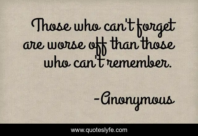 This page presents the quote "Those who can't forget are worse off than those who can't remember.". Author of this quote is Anonymous. .
