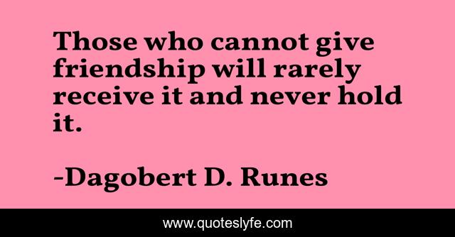 This page presents the quote "Those who cannot give friendship will rarely receive it and never hold it.". Author of this quote is Dagobert D. Runes. .