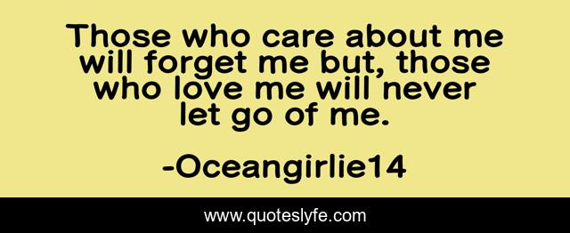 This page presents the quote "Those who care about me will forget me but, those who love me will never let go of me.". Author of this quote is Oceangirlie14. This quote is about love, family, self, inspirational, enthusiasm, affection,.