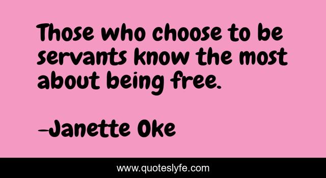 This page presents the quote "Those who choose to be servants know the most about being free.". Author of this quote is Janette Oke. This quote is about freedom, janette-oke, servants,.