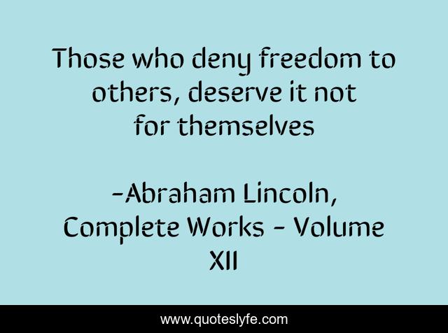 "Abraham Lincoln, Complete Works - Volume XII Quotes." Quoteslyfe.com, 2025. Mon. 08 Dec. 2025. <https://www.quoteslyfe.com/quote/Those-who-deny-freedom-to-others-deserve-54224>.