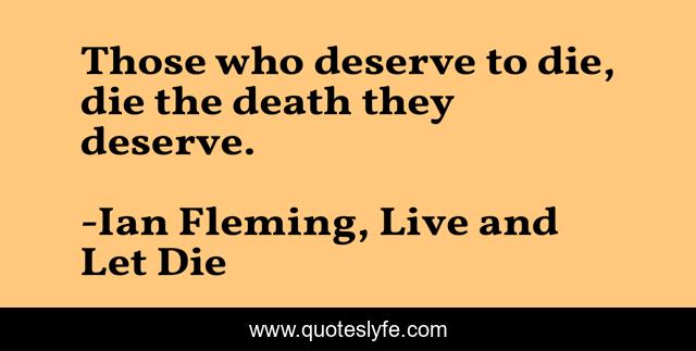 This page presents the quote "Those who deserve to die, die the death they deserve.". Author of this quote is Ian Fleming, Live and Let Die. This quote is about die, live,.
