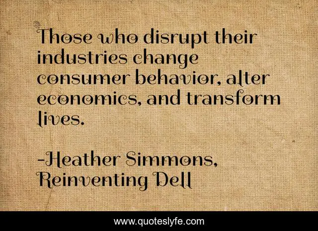 "Heather Simmons, Reinventing Dell Quotes." Quoteslyfe.com, 2025. Fri. 05 Dec. 2025. <https://www.quoteslyfe.com/quote/Those-who-disrupt-their-industries-change-consumer-219836>.
