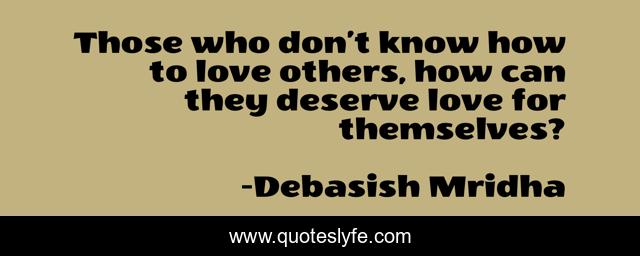 This page presents the quote "Those who don’t know how to love others, how can they deserve love for themselves?". Author of this quote is Debasish Mridha. This quote is about life, love, knowledge, inspirational, intelligence, philosophy, wisdom, quotes, affection,.
