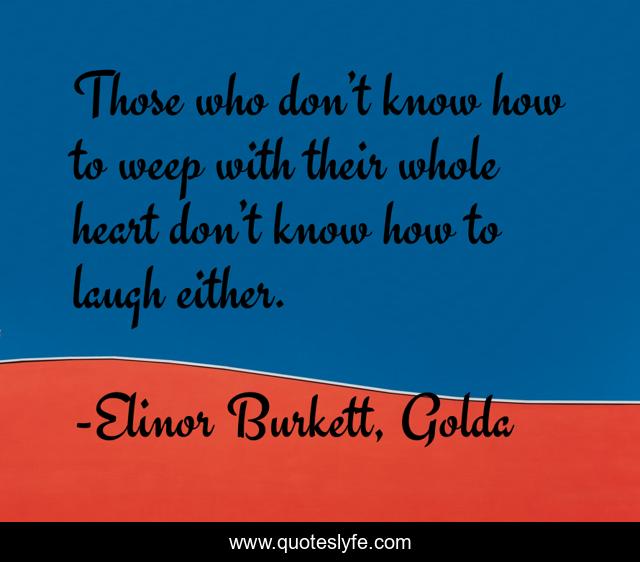 This page presents the quote "Those who don’t know how to weep with their whole heart don’t know how to laugh either.". Author of this quote is Elinor Burkett, Golda. This quote is about heart, joy, sadness, weeping, laughter, happiness,.