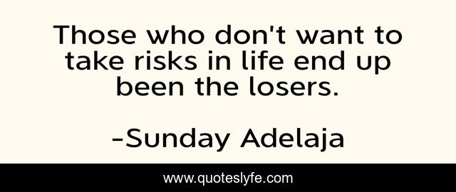 This page presents the quote "Those who don’t want to take risks in life end up been the losers.". Author of this quote is Sunday Adelaja. This quote is about life, end, dont, been, losers, risk,.