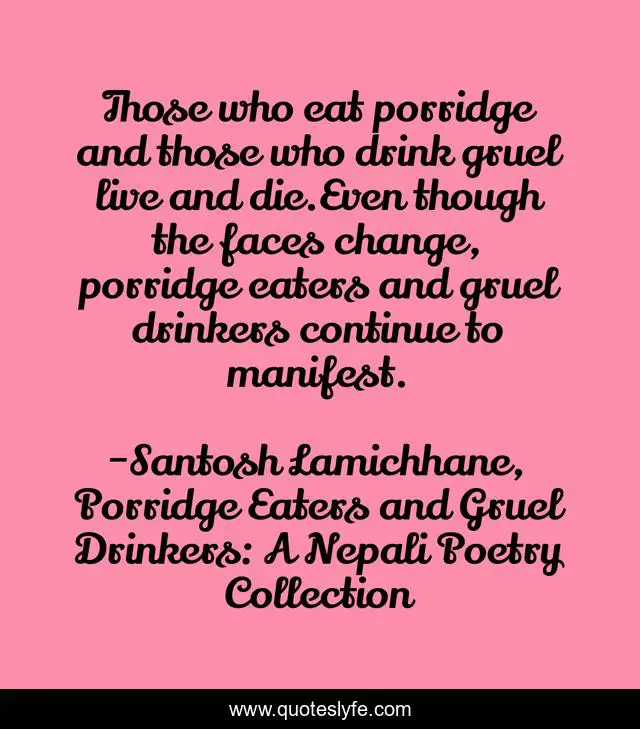 "Santosh Lamichhane, Porridge Eaters and Gruel Drinkers: A Nepali Poetry Collection Quotes." Quoteslyfe.com, 2025. Sat. 06 Dec. 2025. <https://www.quoteslyfe.com/quote/Those-who-eat-porridge-and-those-who-182188>.