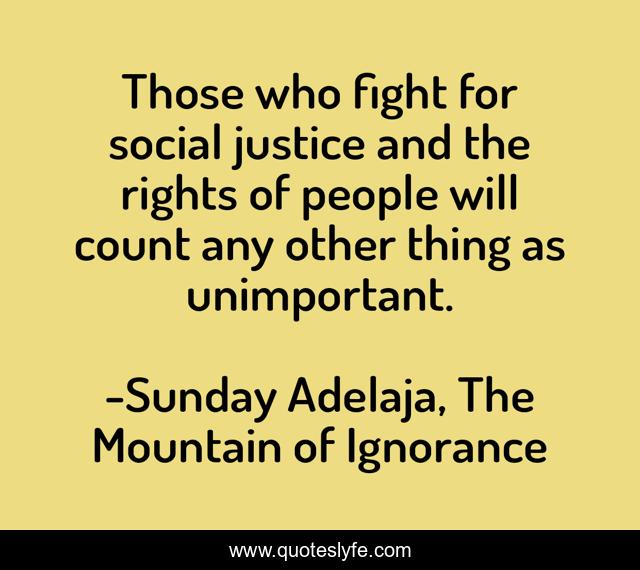 This page presents the quote "Those who fight for social justice and the rights of people will count any other thing as unimportant.". Author of this quote is Sunday Adelaja, The Mountain of Ignorance. This quote is about mountain, life, social-justice, darkness, power, danger, importance, god, rights,.
