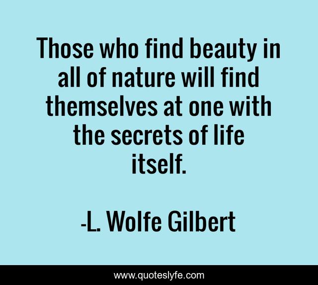 This page presents the quote "Those who find beauty in all of nature will find themselves at one with the secrets of life itself.". Author of this quote is L. Wolfe Gilbert. This quote is about secrets, life, nature,.