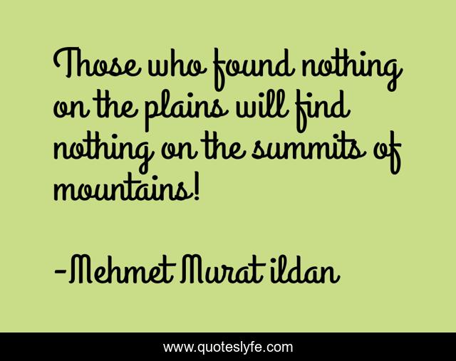 This page presents the quote "Those who found nothing on the plains will find nothing on the summits of mountains!". Author of this quote is Mehmet Murat ildan. .