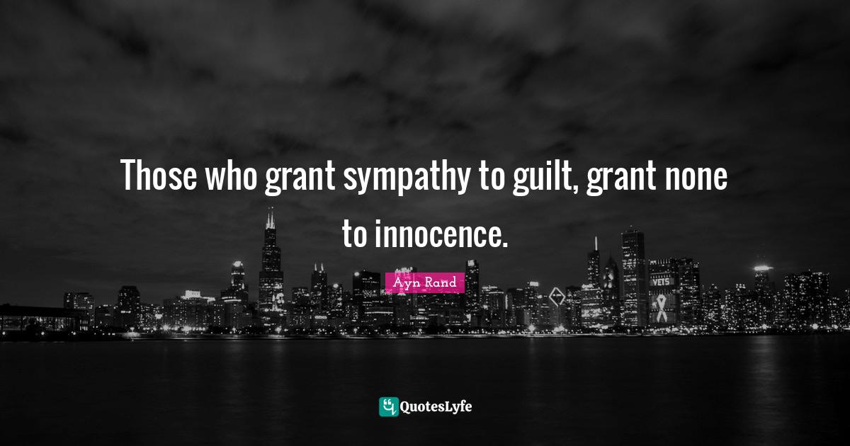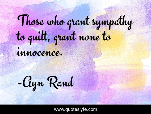 This page presents the quote "Those who grant sympathy to guilt, grant none to innocence.". Author of this quote is Ayn Rand. This quote is about victims, relativism, philosophy, evil, abuse, moral, virtue, morality,.