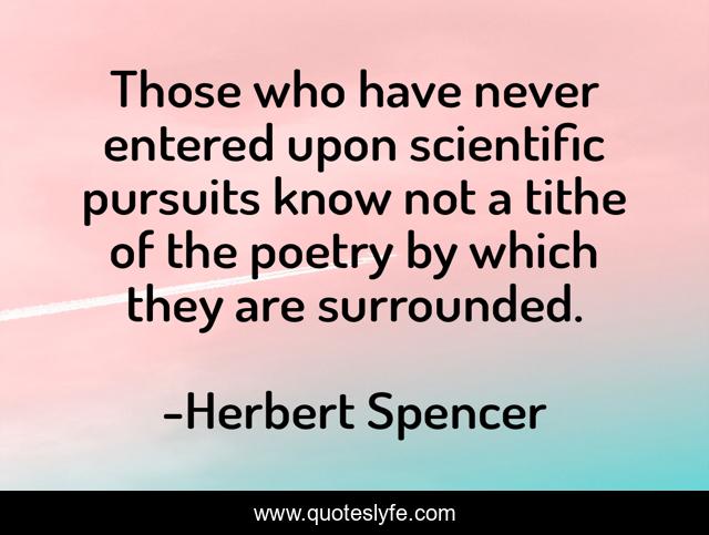 This page presents the quote "Those who have never entered upon scientific pursuits know not a tithe of the poetry by which they are surrounded.". Author of this quote is Herbert Spencer. .